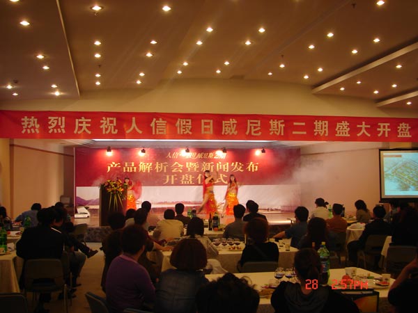 開盤儀式分為三個部分,首先是領導們發言,陳總代表人信地產向到場的各界人士做了簡短而意味深長的講話。接下來,抽獎環節和文藝節目穿插進行,公司各領導分別抽取了一二三等獎,并對獲獎的業主頒發獎品。最后,極具異國風情的舞蹈、詼諧幽默的相聲、優雅動聽的薩克斯獨奏等文藝節目的演出,讓在座賓客仿佛置身于迷人的“水城”—威尼斯,感受著那四季如春,清水環繞的獨特自然禮遇,而且幸運者還可以獲得由人信地產精心準備的豐厚獎品。