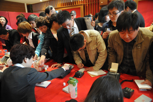 從早上天蒙蒙亮開始,人信·太子灣營銷中心門口就有大批客戶提前趕到,到8點鐘,現場已經聚集了好幾百人排隊入場,瞬間營銷中心大廳內座無虛席,擠得滿滿當當,如此火爆的場面經開史無前例。8點40,正式開盤,湖北經視著名主持人談笑擔任現場主持,更加帶動了現場氣氛。熱烈的氛圍感染著現場每一個人,售樓小姐積極、熱情、有序的引導看房客戶購買自己心儀的房子,等候的客戶則緊張的關注每一次叫號,擔心搶不到自己心儀已久的房子。在現場,一位正在簽訂購房合同的周姓客戶表示,在決定買太子灣之前已經看過周邊所有項目,仔細對比之后還是決定買太子灣的房子,離萬達近、離單位也近,以后生活方便,公園也做的很好,現在正是春暖花開的時候,里面實在太漂亮了,以后散步也好、晨練也好都很不錯。