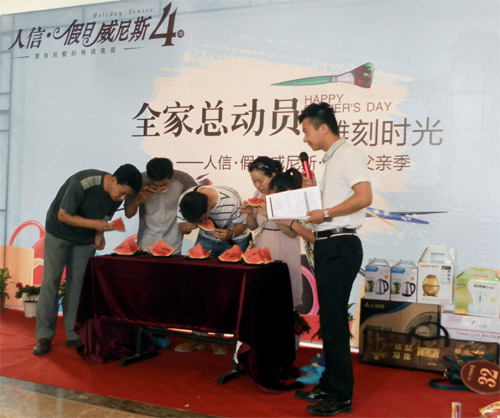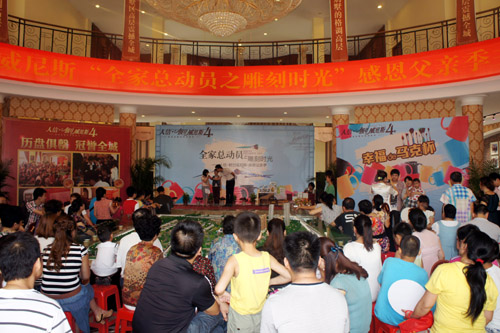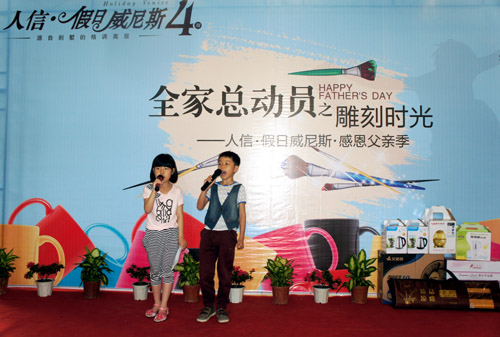 沉浸在濃濃的溫馨與溫情之中,滿滿的都是愛。6月16日為迎接2012年父親節,人信·假日威尼斯營銷中心內一場別開生面主題為《全家總動員之雕刻時光——感恩父親季》親子派對活動幸福開啟,所有到場新老客戶及孩子們在這里共同歡度過了一個愉快周末;顒赢斕,現場吸引100余組家庭全家大小一起出動。人信·假日威尼斯特邀糕點師現場為客戶烘焙蛋撻、西點等供來賓品嘗,精心準備水果沙拉、果汁涼茶等也是全程相伴。