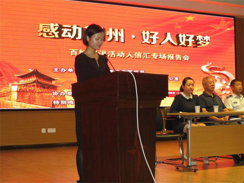 荊州人信匯代表上臺演講《將社會責任寫在愛的旗幟上》